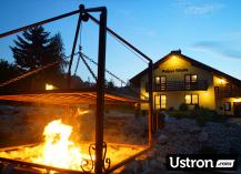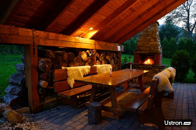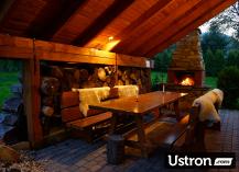 Do salonu przyległy taras z zadaszeniem i ogólnodostępnym kamiennym grillem zewnętrznym.
